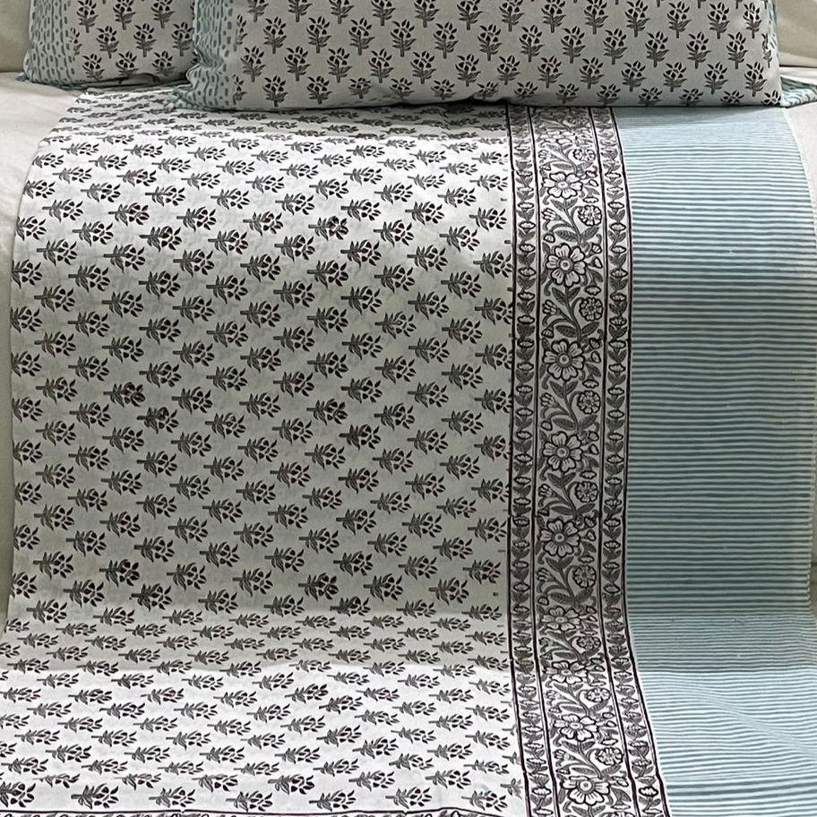 Handblock 10ft by 10ft  Bedsheets with 2 Pillow Covers