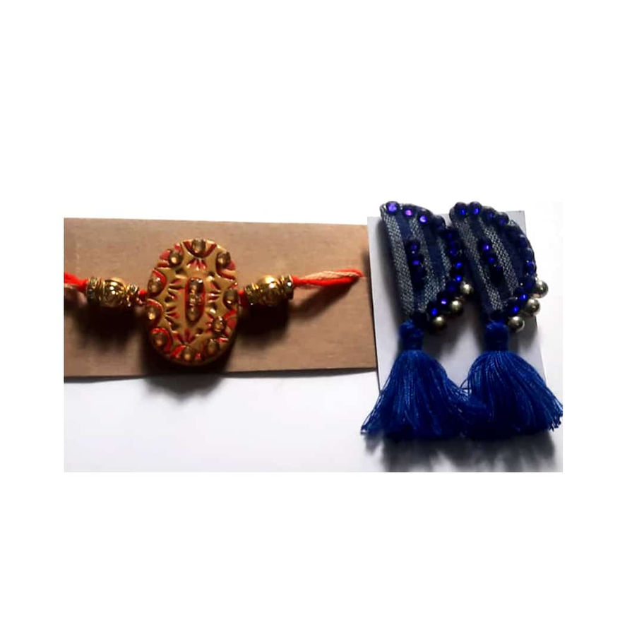 Handcrafted terracotta Rakhie With Earing | Have the happiest Rakshabandhan