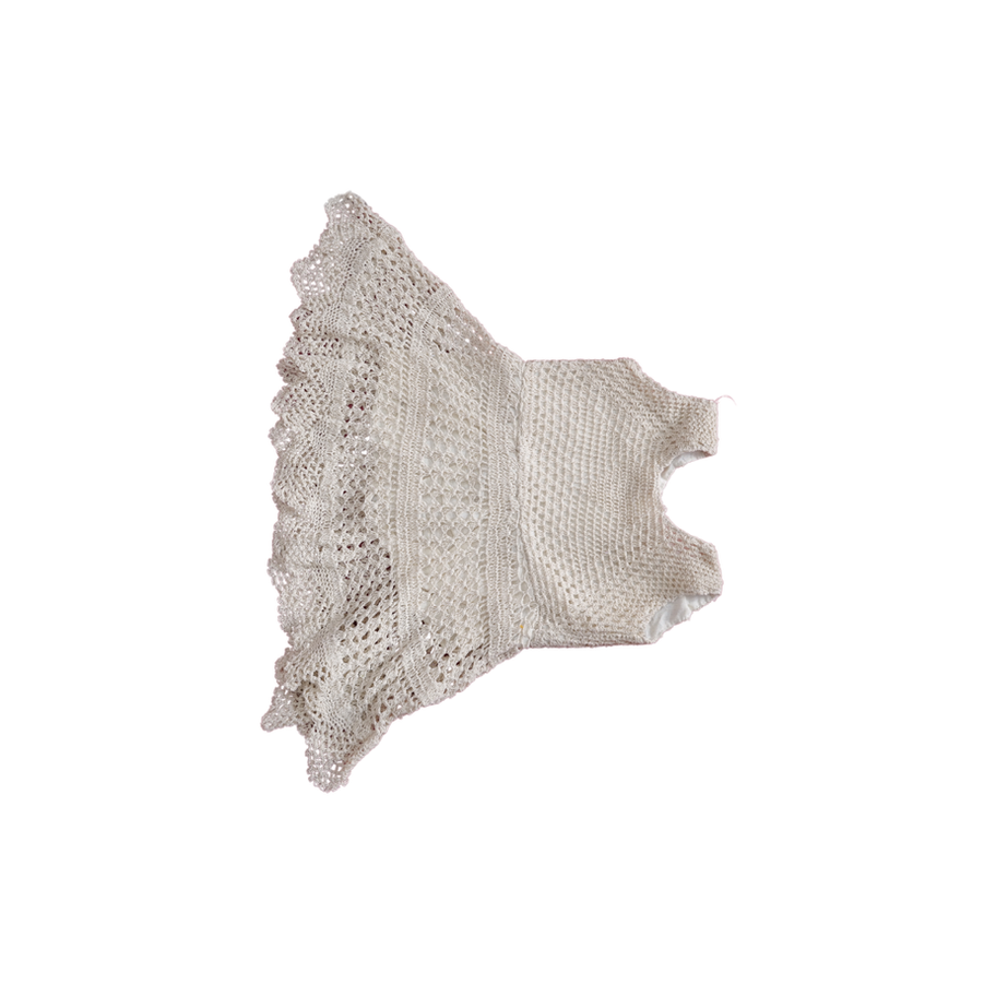 Designed in a soft, neutral beige tone 🤍🌿, this dress exudes a classic charm that’s perfect for any occasion. The intricate crochet lace work adds delicate detailing, while the flared skirt with scalloped edges creates a graceful, flowy silhouette.