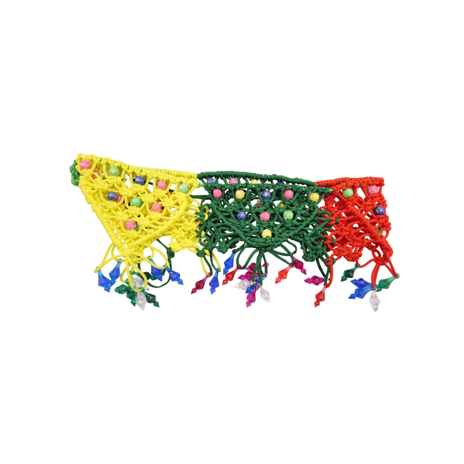 This handmade thoranam wire features vibrant crochet patterns with decorative beads and tassels, making it a perfect addition to your entrance décor 🌿💛.