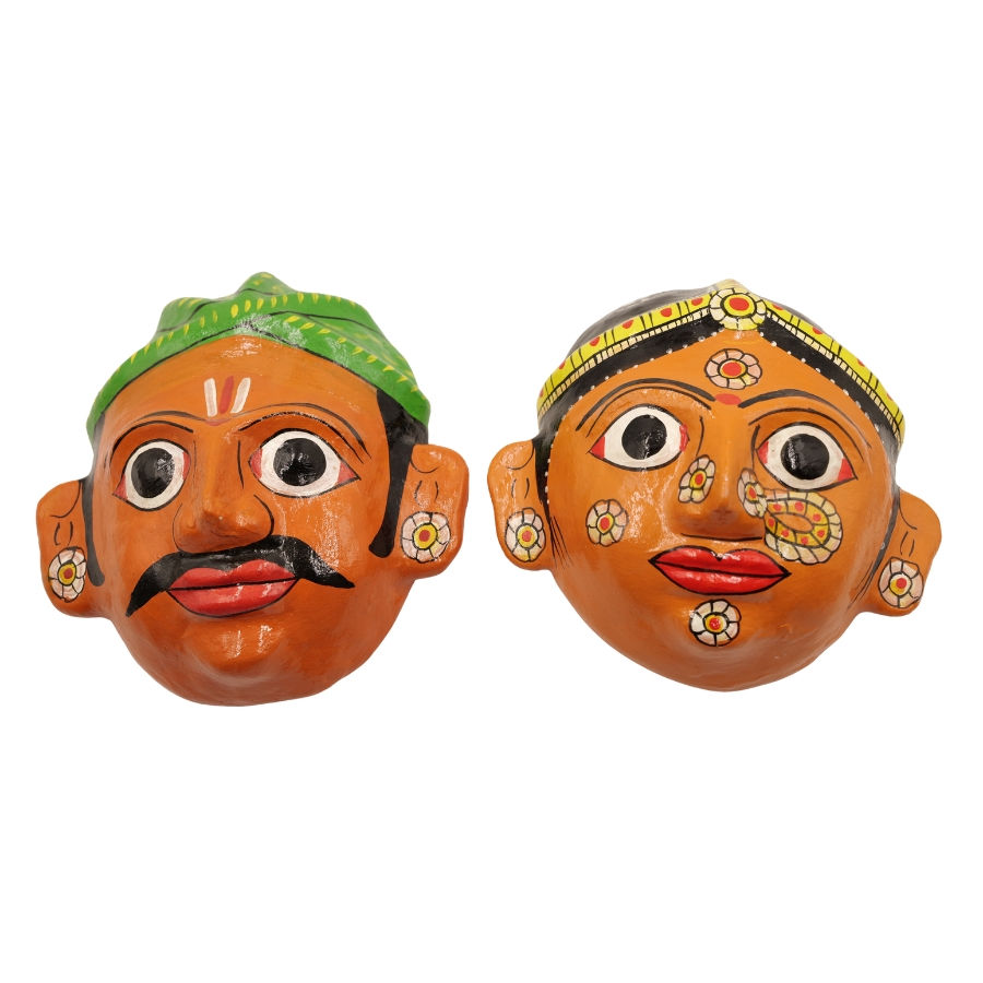 Handpainted Village Couple Masks Cheriyal Folk Decor